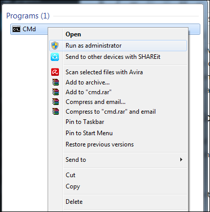Step 1. First of all, click on Start and type cmd. Now right click on a cmd icon and select Run as administrator. Now command prompt window will open, now select your drive where you want to remove a virus.